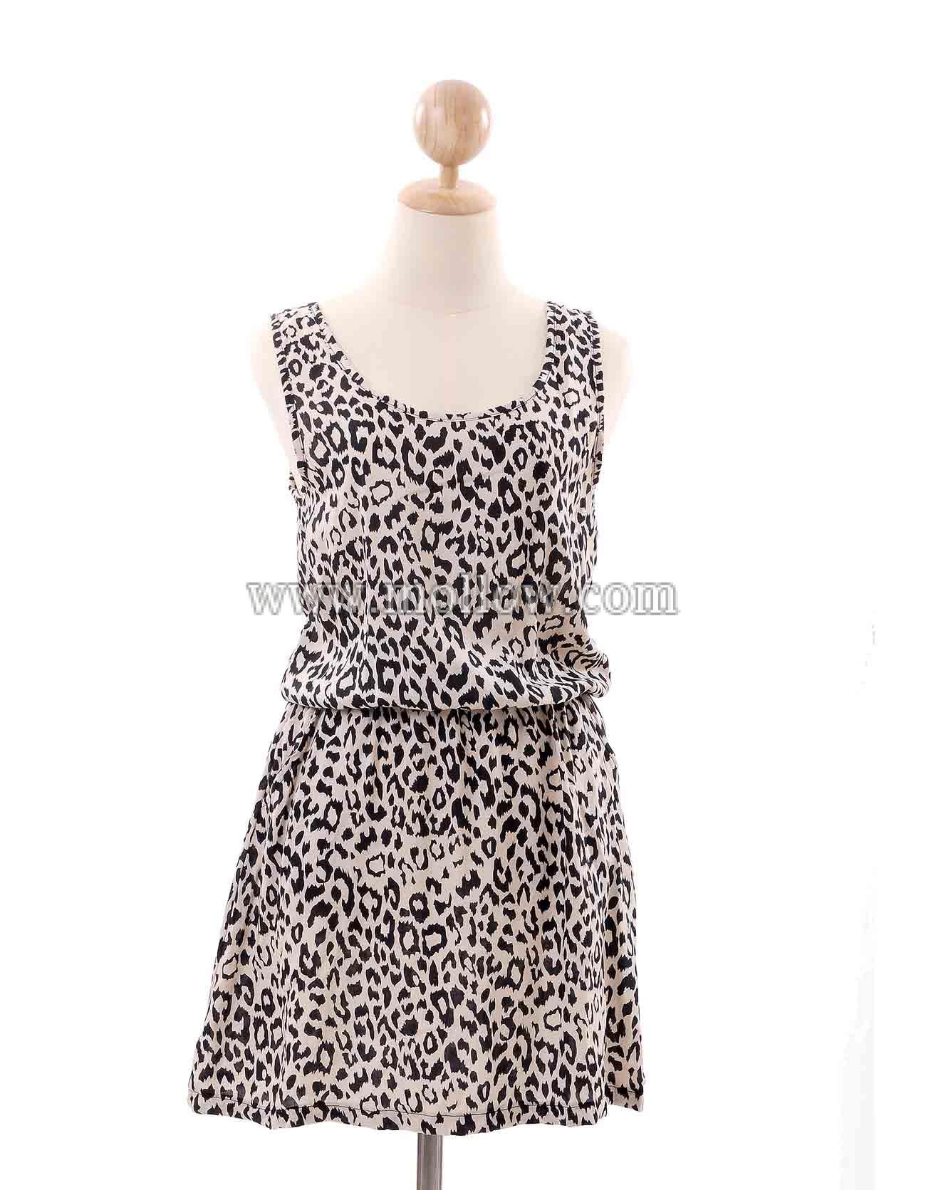 - ผ้าชีฟอง แขนกุดลายเสือ ยางยืดรอบเอว