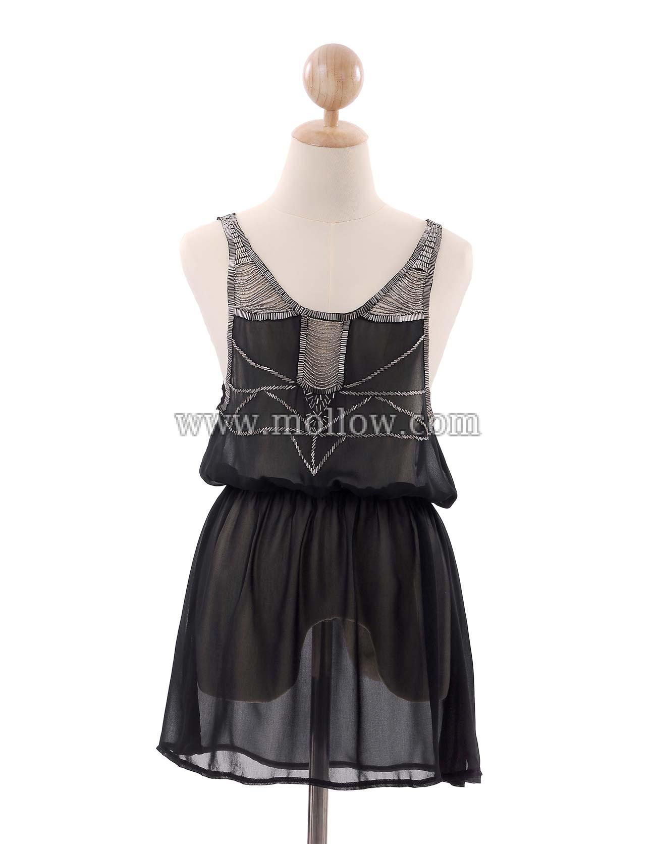 - ผ้าชีฟอง แขนกุด ปักเลื่อมด้านหน้า ยางยืดรอบเอว
