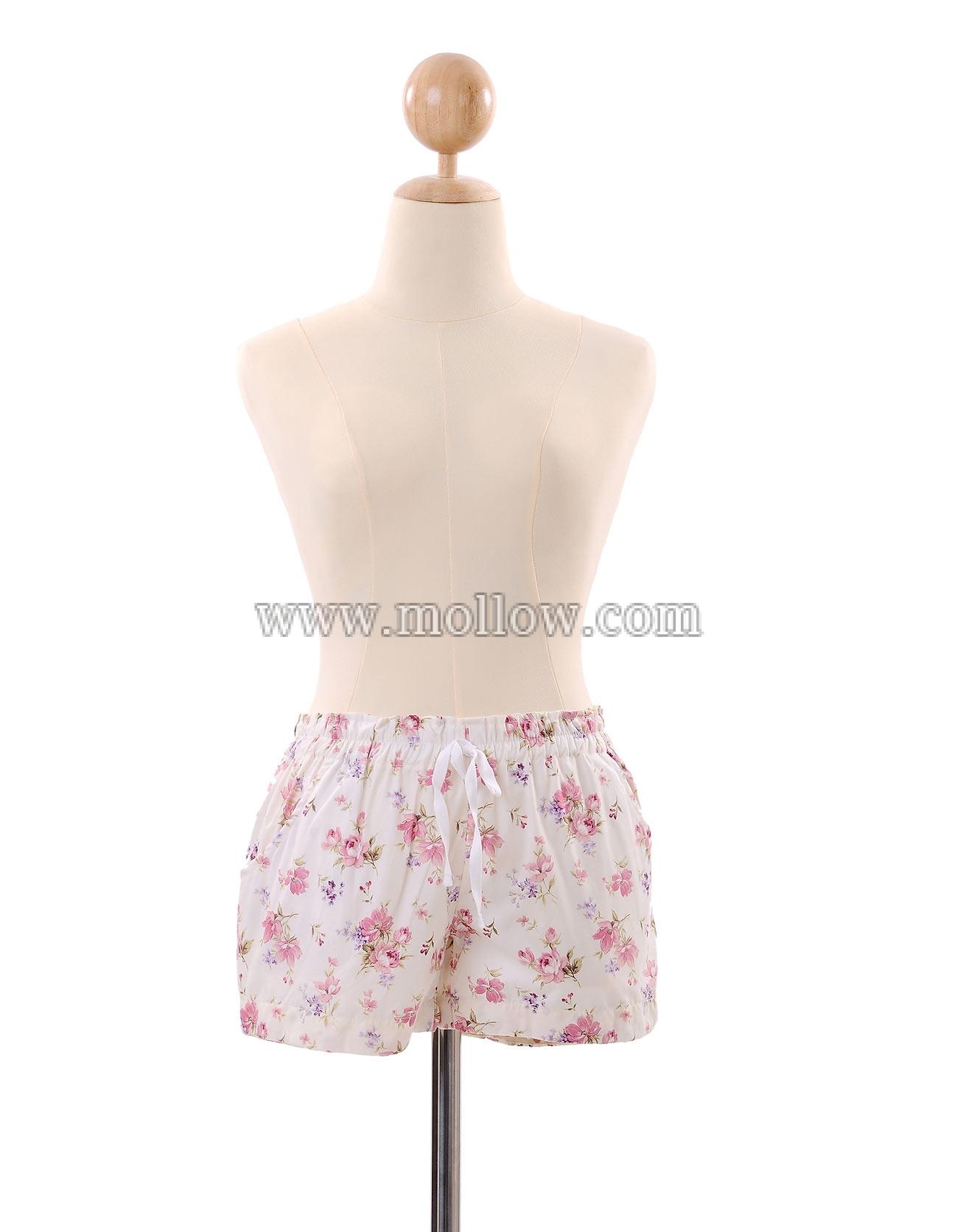 - ลายดอกไม้ ยางยืดรอบเอวและมีเชือกผูกเอว ขอบชายกางเกงด้านในพับขึ้นมาเป็นลายจุดสีสัน