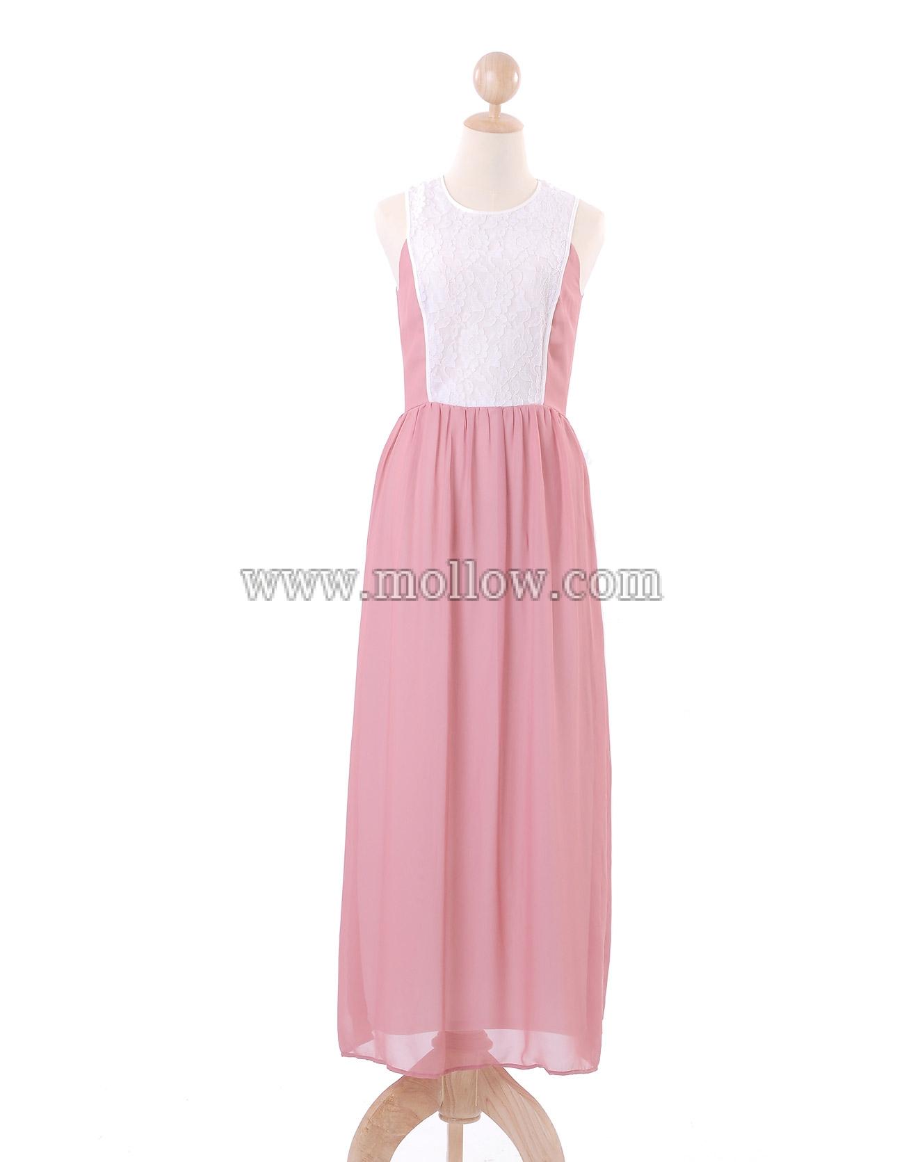 - ผ้าชีฟอง แขนกุดคอกลมตรงหน้าอกและแผ่นหลังเป็นผ้าลูกไม้ มีซิปด้านหลังมีซับใน