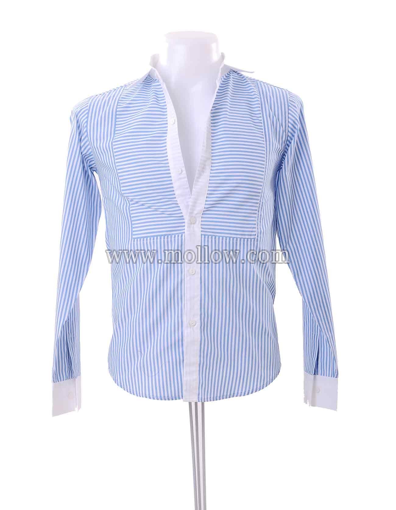 - ปกเชิ้ต ลายทางสลับสีฟ้าขาว ไม่มีกระเป๋า