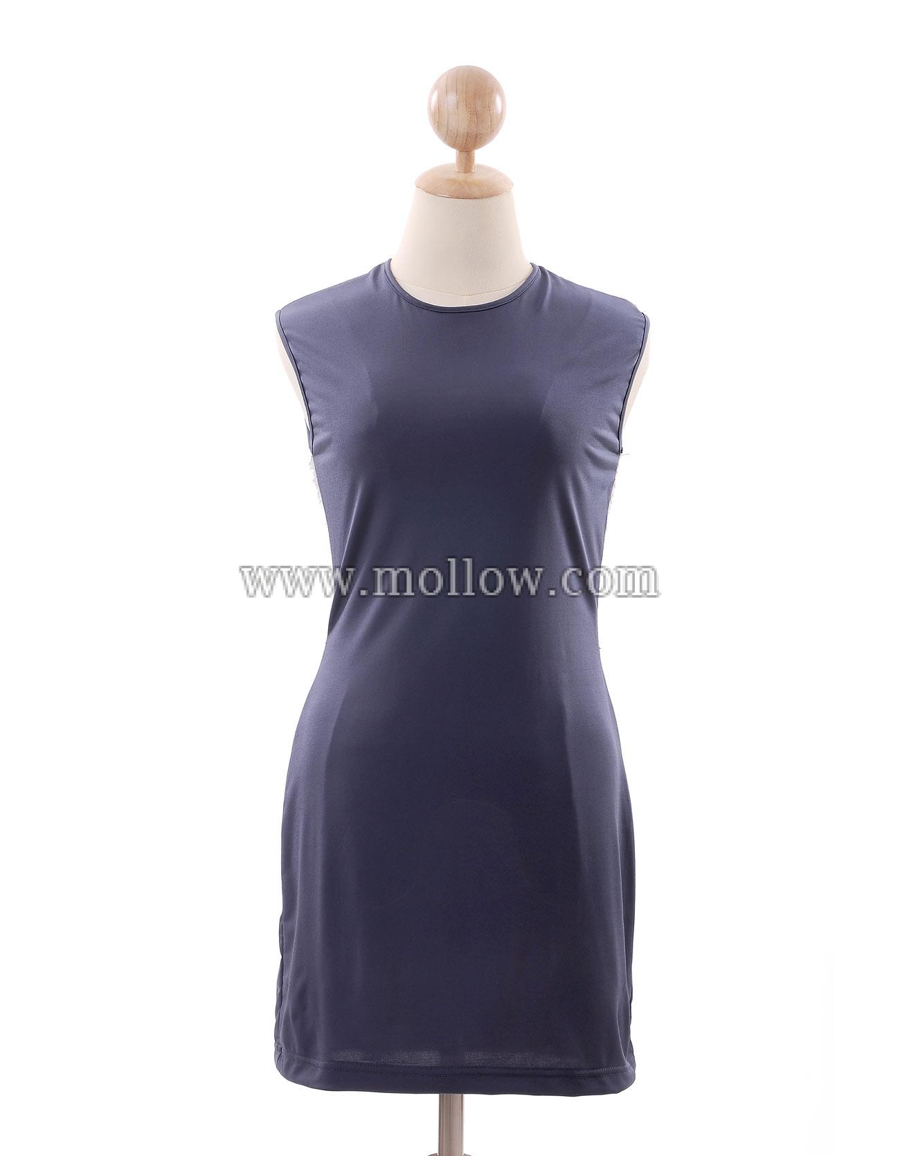 - ผ้ายืดแขนกุด ไม่มีลาย มีผ้าลูกไม้และซิปด้านหลัง