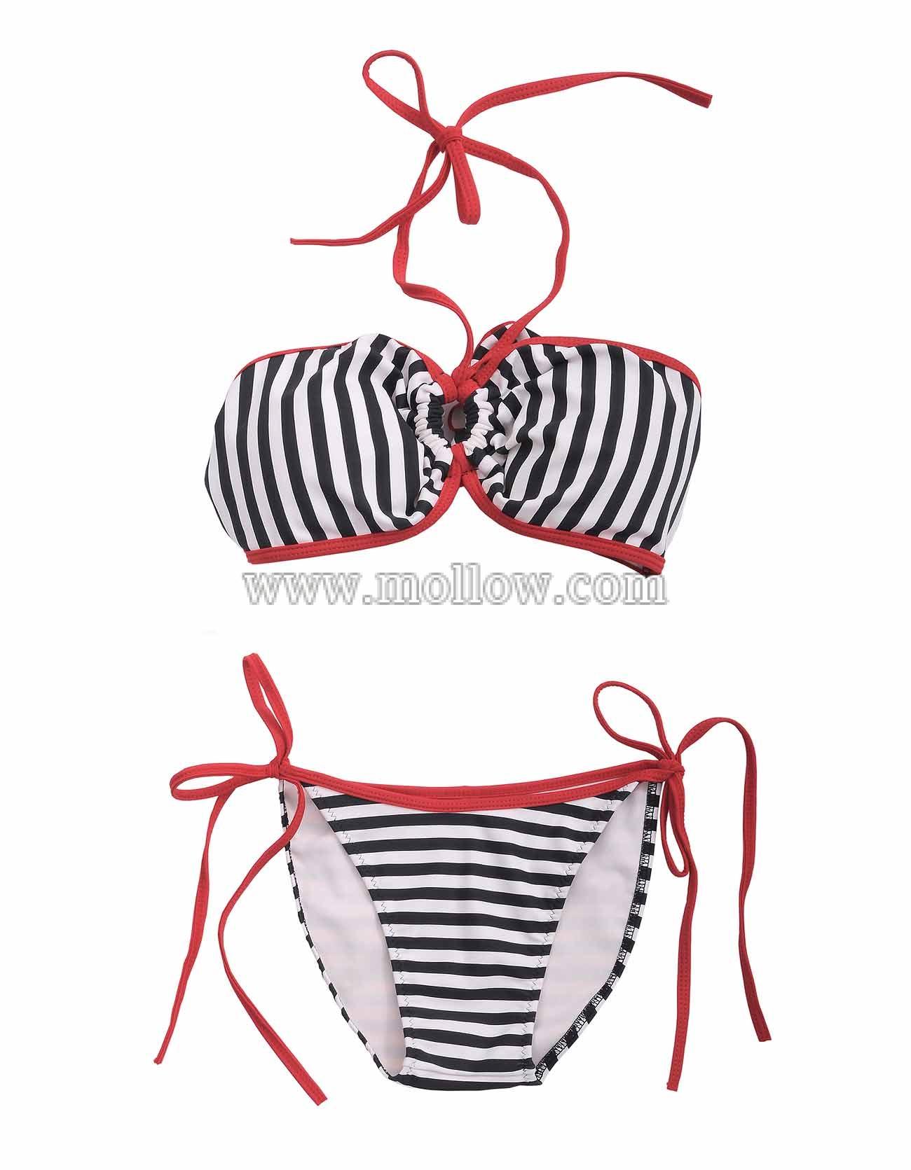 - ทูพีซ คล้องคอผูกโบว์ด้านหลัง ผูกโบว์ด้านข้างทั้งสองข้าง มีฟองน้ำ